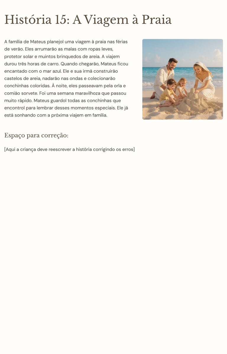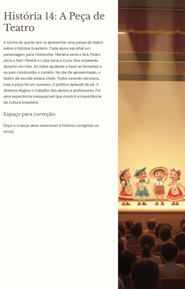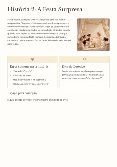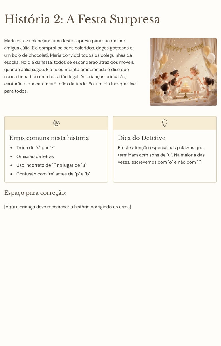 Com mais de 50 páginas de histórias divertidas, desafios inteligentes e atividades dinâmicas, este Ebook ajuda as crianças a identificar e corrigir erros ortográficos de forma natural e lúdica.